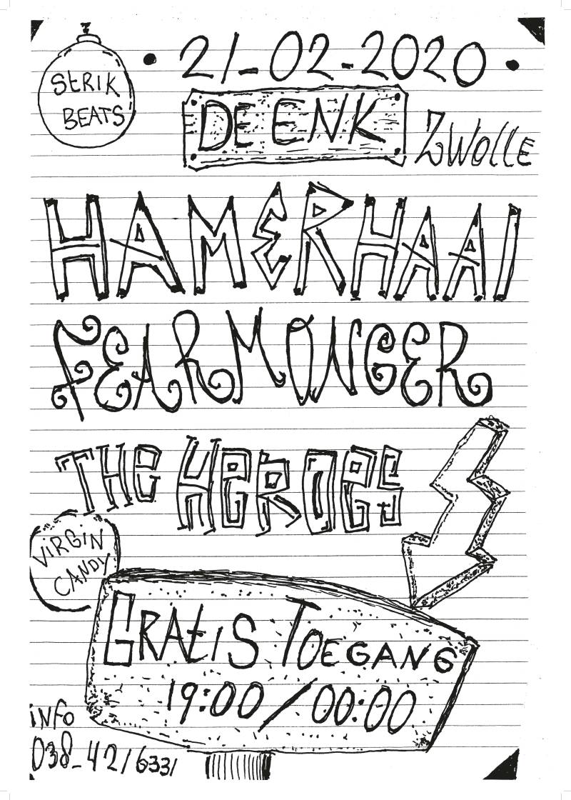 Terug op vertrouwde grond in Zwolle. Met Hamerhaai en Fearmonger ... het laatste optreden voor de voorbereidingen op de Virgin Candy Tour in Sao Paolo, Brazilië.